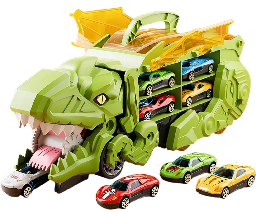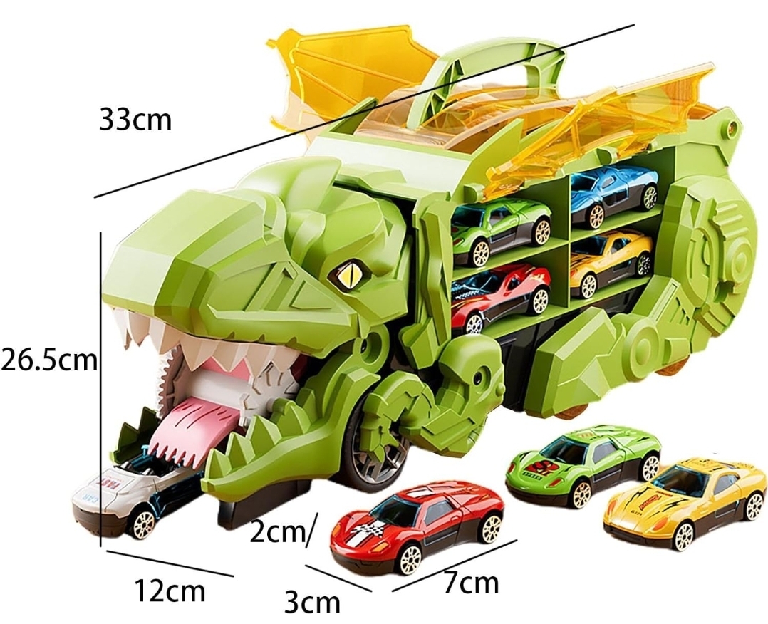 Eating And Storage Function : Dinosaur Can Swallow Mini Car Into Mouth, After Being Swallowed, The Car Can Slide Out Of The Dinosaur’S Mouth Door. The Dinosaur’S Body Can Store The Toy Cars, Which Not Only Makes It Easy For Children To Tidy Up After Playing.